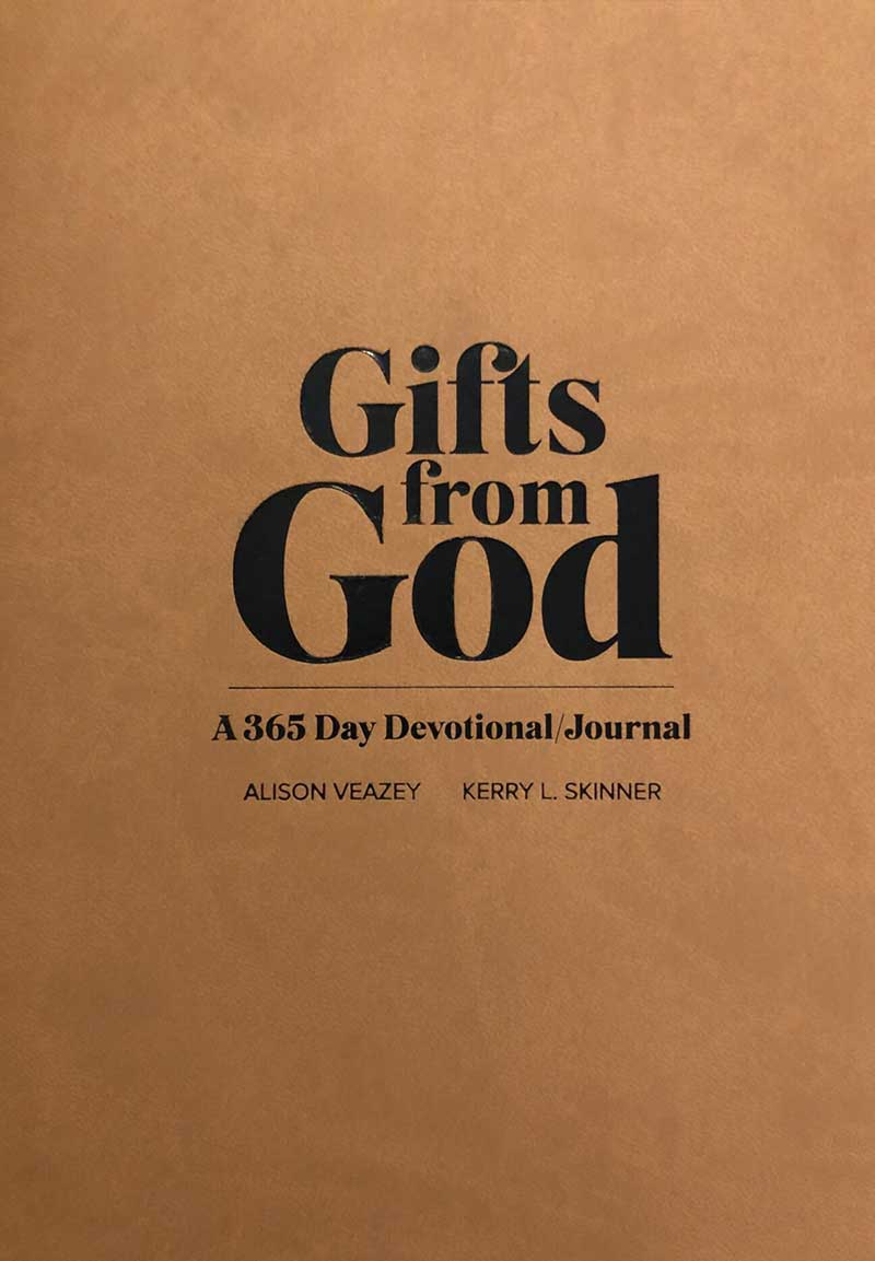 Gifts from God is a 392 page devotional/journal beautifully bound and in a classy imitation leather cover. A place is provided on each page for writing your own journal notes. The perfect gift that goes on and on.